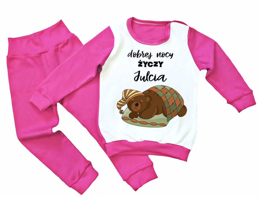 Śpiący miś Moocha Piżamka dziecięca z imieniem
