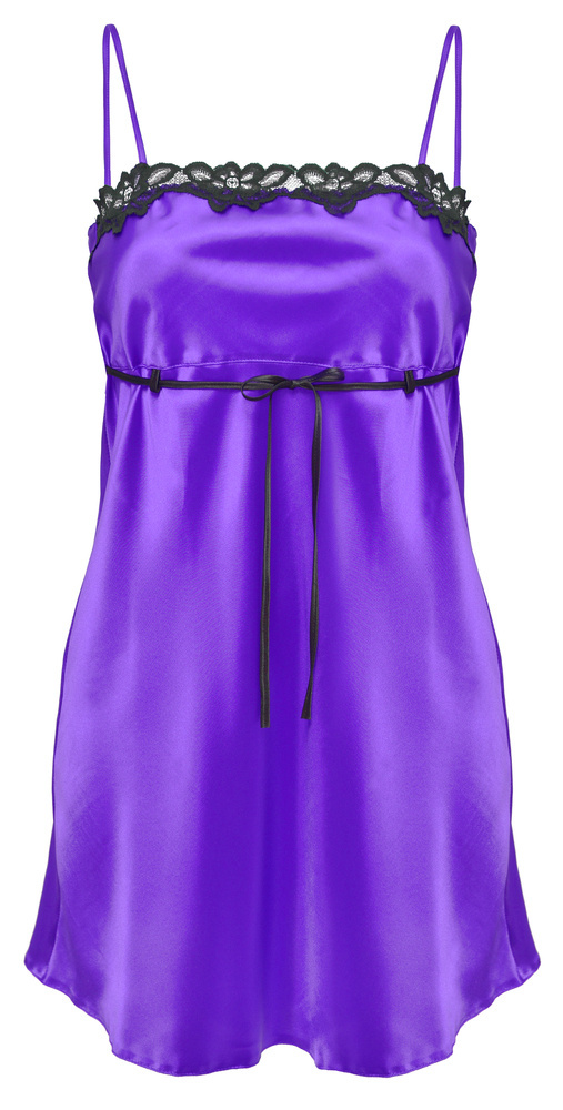 Zmysłowa satynowa haleczka, z ozdobnym przodem z czarnej koronki, pod biustem wiązana kokardką.