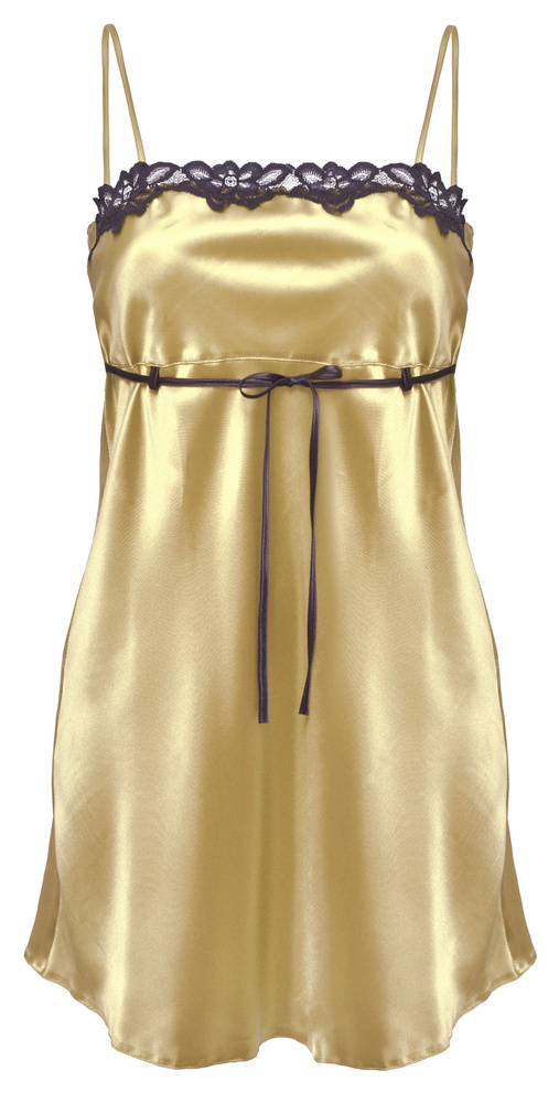 Zmysłowa satynowa haleczka, z ozdobnym przodem z czarnej koronki, pod biustem wiązana kokardką.