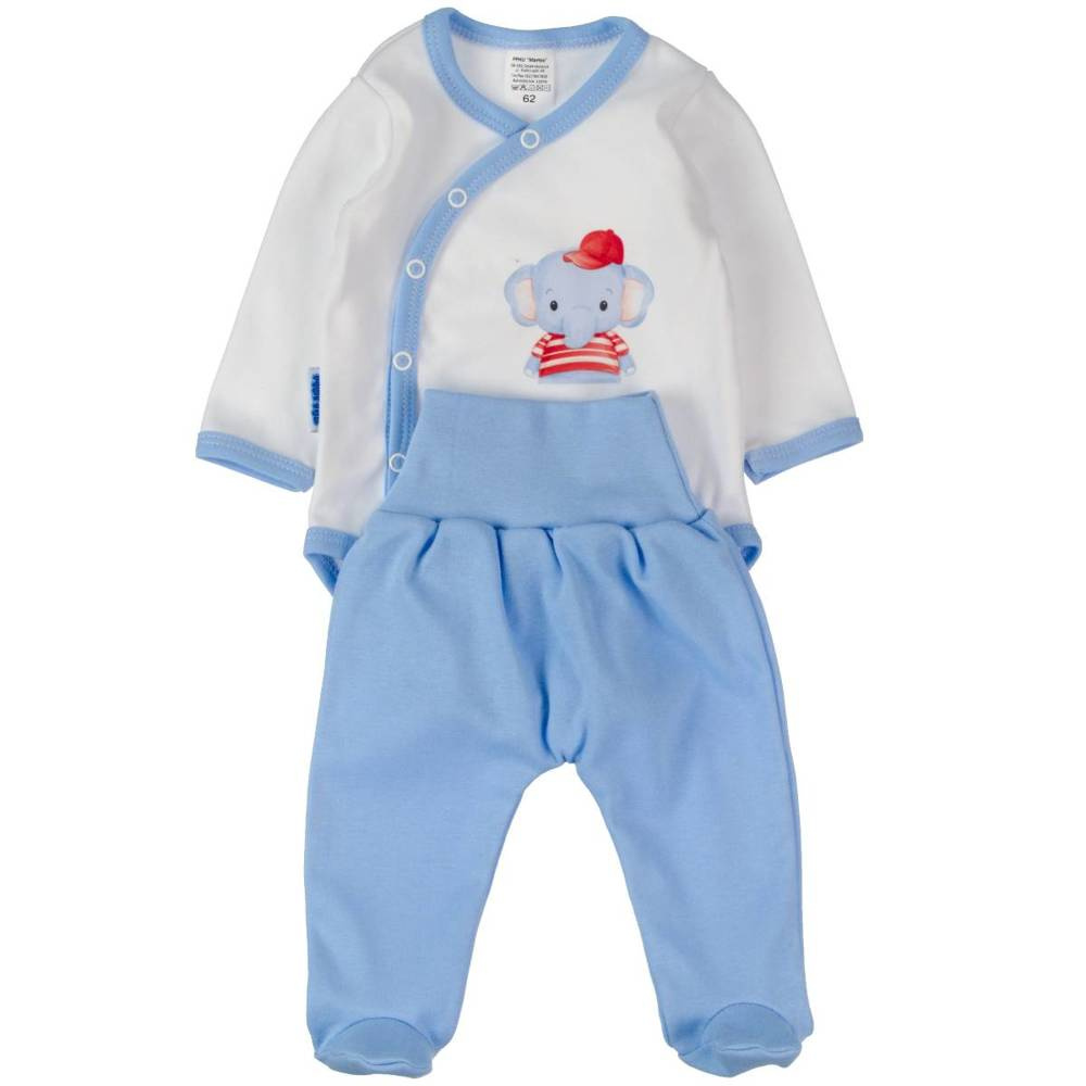 Zestaw niemowlęcy, który składa się z body i półśpiochów. Nadruk wykonano bezpieczną metodą farb wodnych. Zatrzaski wykonano z antyalergicznego, bezniklowego tworzywa.