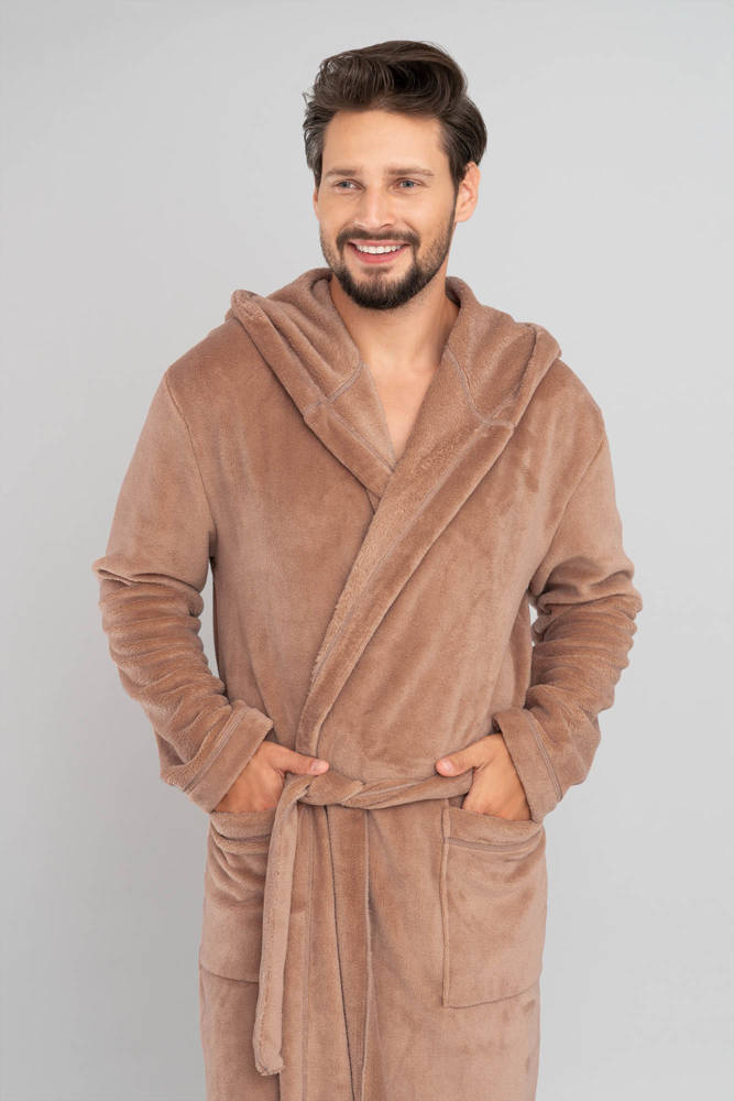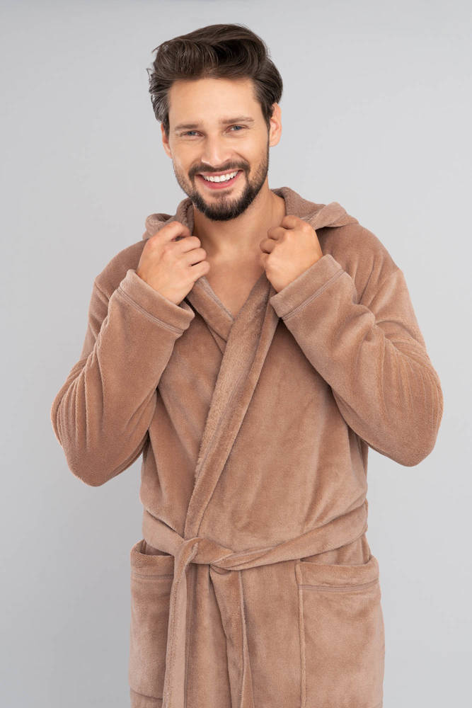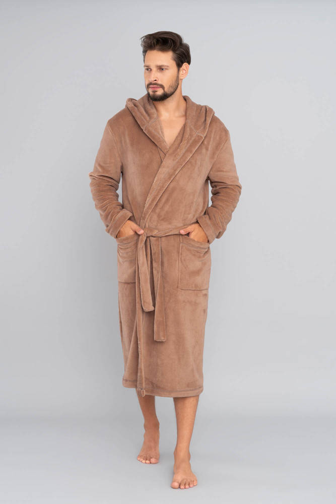 Mimas Szlafrok męski z kapturem Italian Fashion- camel