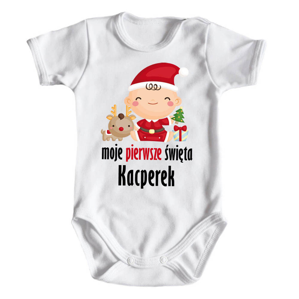 "Moje pierwsze Święta z imieniem" Moocha body krótki rękaw biały