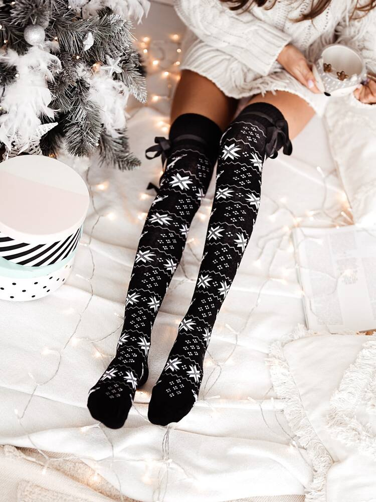 Zakolanówki damskie bawełniane ozdobione motywem świątecznym.