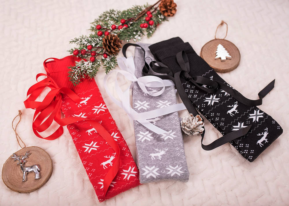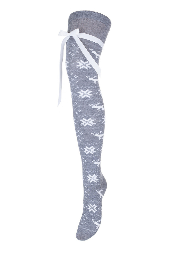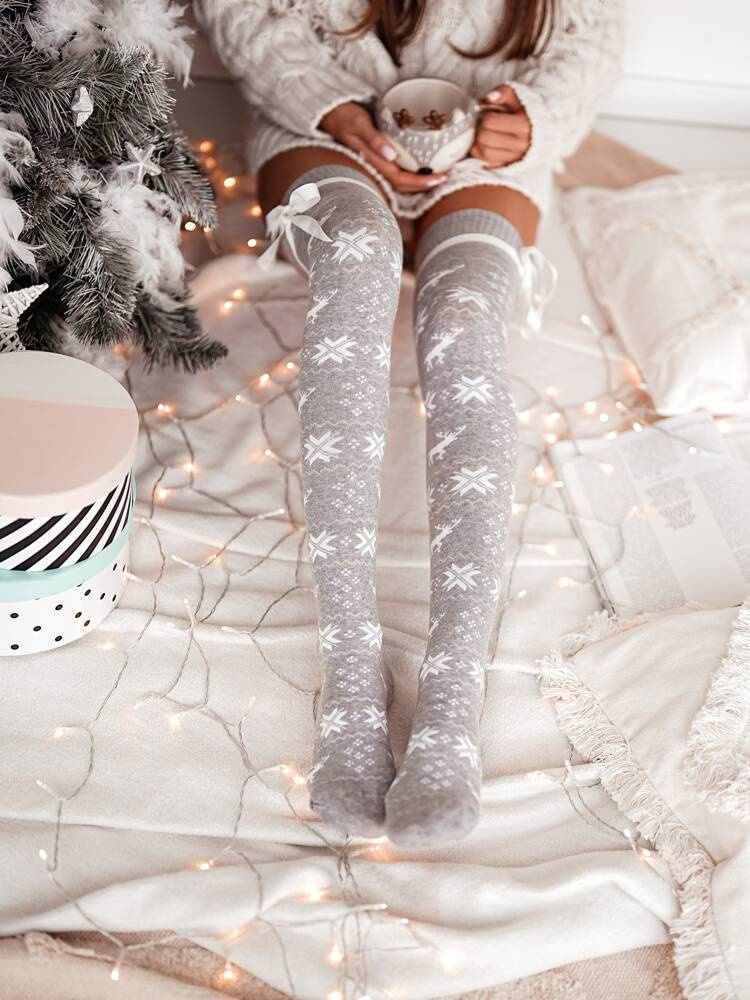 Zakolanówki damskie bawełniane ozdobione motywem świątecznym.