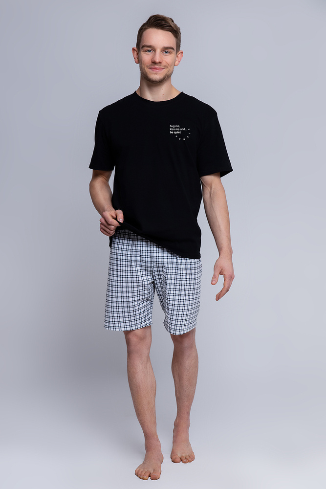 Wygodna i komfortowa piżama męska wykonana z wysokiej jakości bawełny. Koszulka z krótkim rękawem, przód zdobi napis. Do kompletu krótkie, wzorzyste spodnie. W pasie komfortowa gumka. Model z kieszeniami.