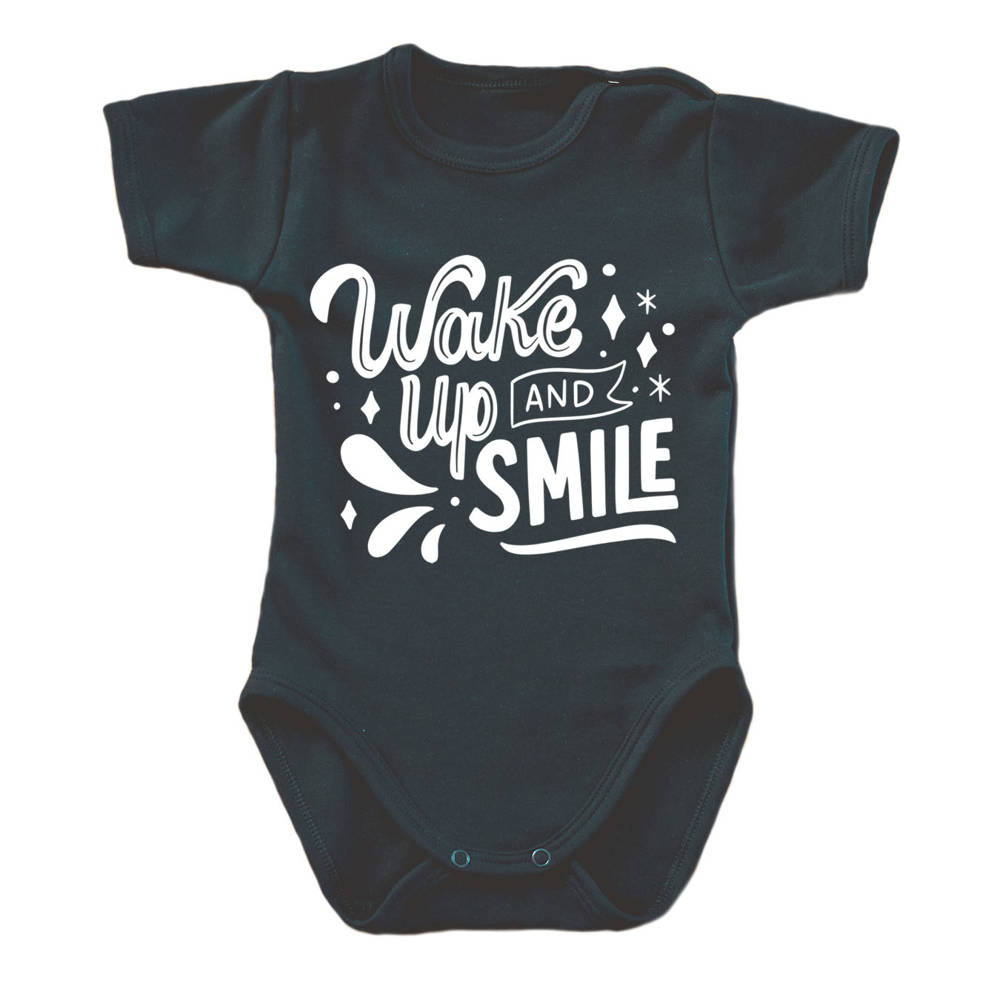 "WAKE UP AND SMILE" Moocha Body krótki rękaw czarny