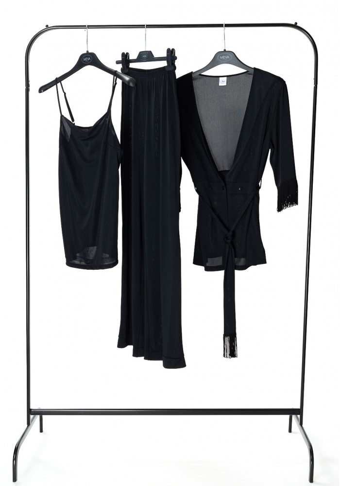 Komplet Josefine składa się z koszulki na ramiączkach, długich prostych spodni oraz narzutki. Klasyka, którą możesz wykorzystać na wiele sposobów. Koszulka nie tylko stanowi część piżamki, ale może być również wykorzystana do eleganckich kreacji, a opływający dekolt pięknie podkreśla piersi. Czarne proste spodnie od piżamy posłużą również jako ubiór typu homewear. Wiązana w pasie narzutka z frędzelkami na rękawach to krótki peniuar, który możesz dowolnie wykorzystywać. Jedwab wiskozowy składa się z 72% wiskozy, 28% poliamidu.