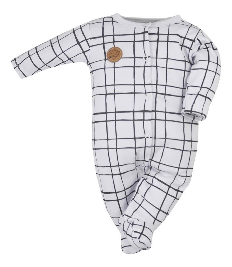 Bawełniany pajacyk niemowlęcy rozpinany na całej długości na napki- co ułatwia przewijanie dziecka.