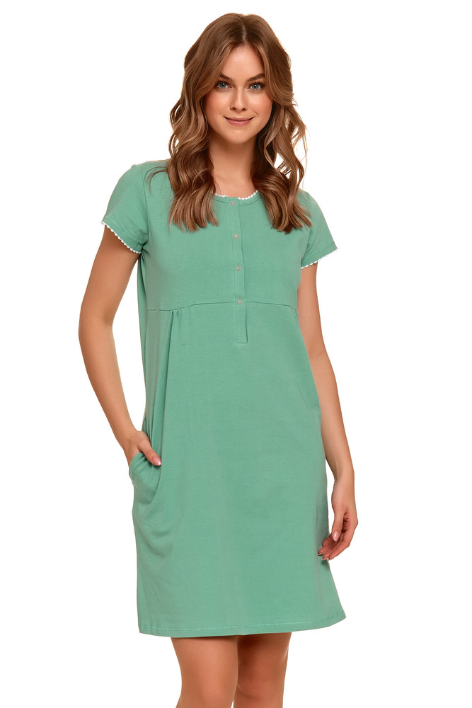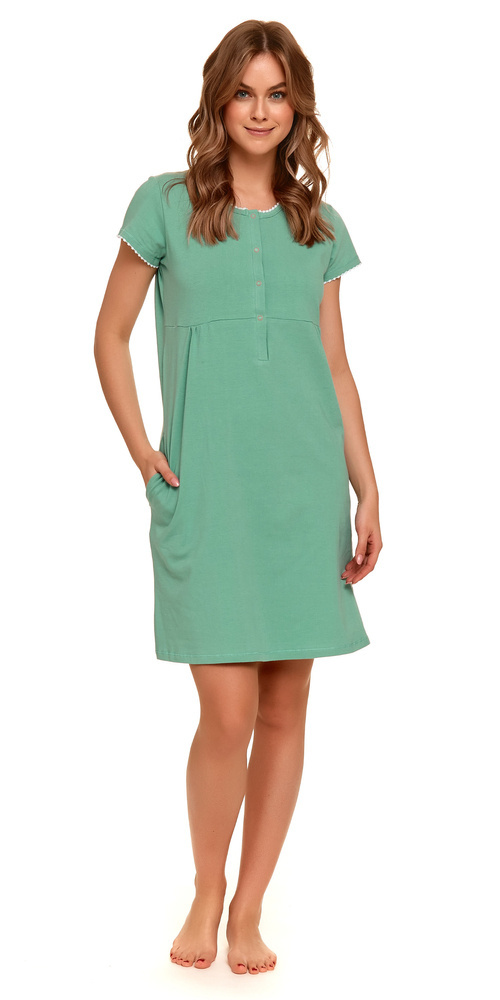 Koszula nocna firmy Doctor Nap idealnie nadaję się dla kobiet w ciąży, a w późniejszym okresie do karmienia. Całość wykonana z wysokogatunkowej bawełny. Niezwykle funkcjonalna, sprawdzi się w ciąży oraz przy karmieniu maleństwa. Jest ona niezwykle kobieca, a staranie dobrany krój daje poczucie komfortu i swobody. Model idealny również do spania oraz do chodzenia na co dzień.