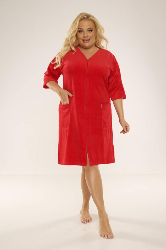 431 Welur Szlafrok Damski Forex - czerwony
