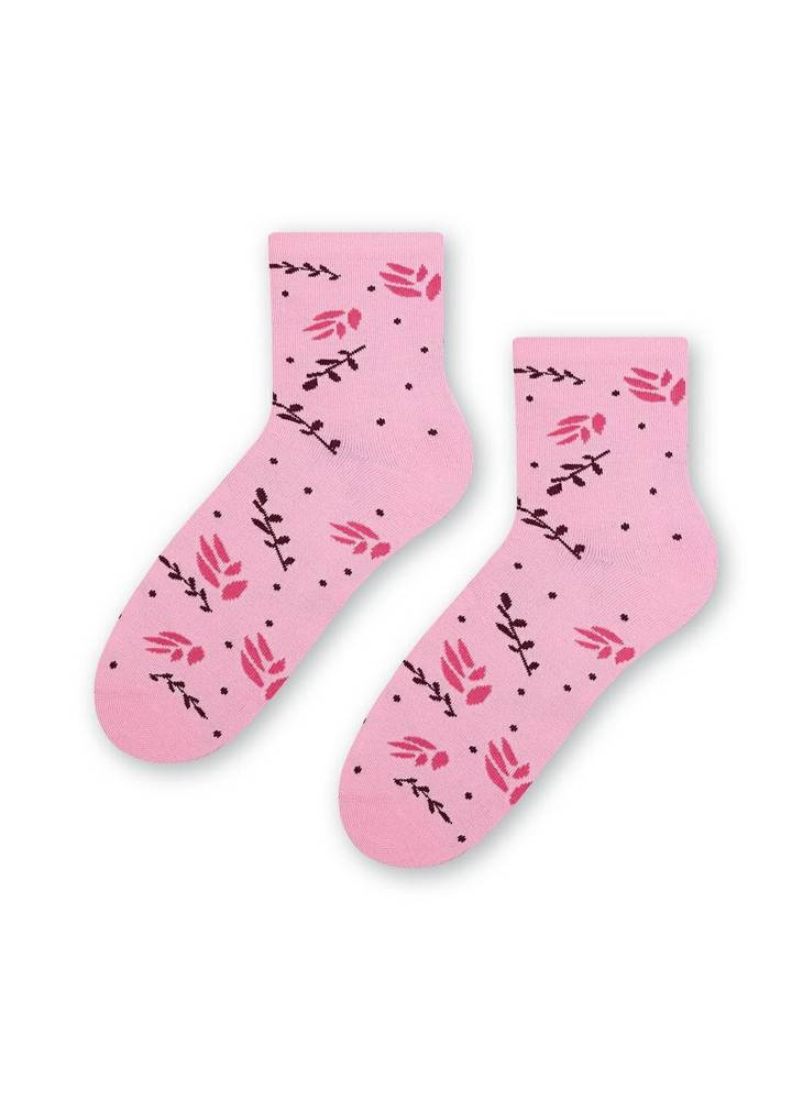 Skarpety bawełniane z dodatkiem włókien elastycznych. Delikatnie przylegający ściągacz i płaski szew gwarantują komfort noszenia. Wysoka jakość oraz efektowne delikatne wzory.