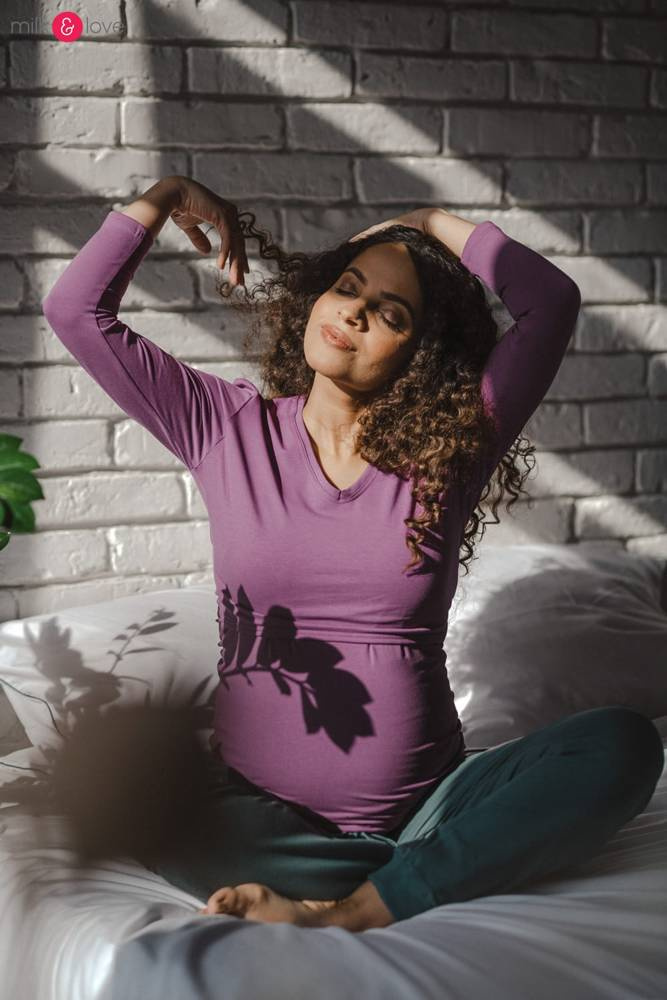 Milk Shirt Bluzka do karmienia i ciążowa z dekoltem w serek jagodowy
