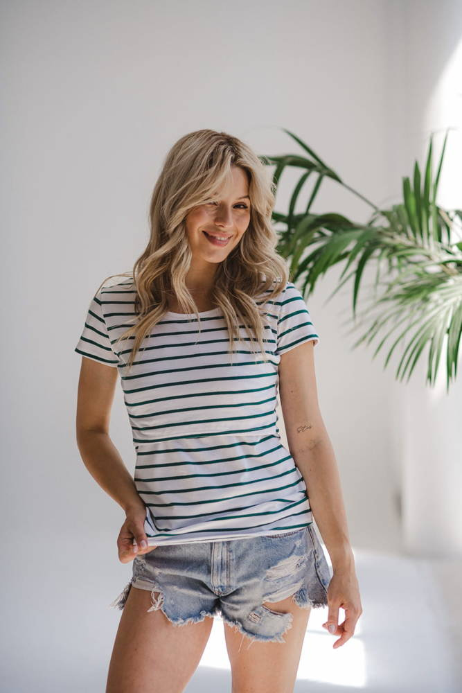 Milk Shirt Bluzka do karmienia i ciążowa z krótkim rękawem Milk&Love w biało-zielone paski