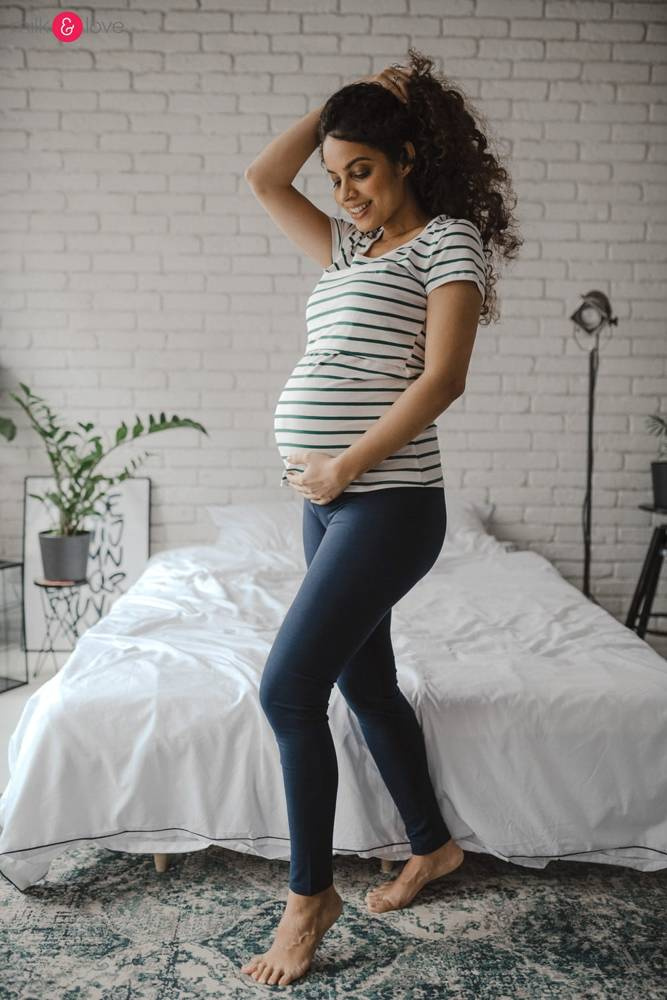 Ubrania milk & love są wykonane z elastycznej dzianiny, dlatego dopasowują się do rozmiarów ciążowego brzuszka i zmieniających się kształtów ciała.