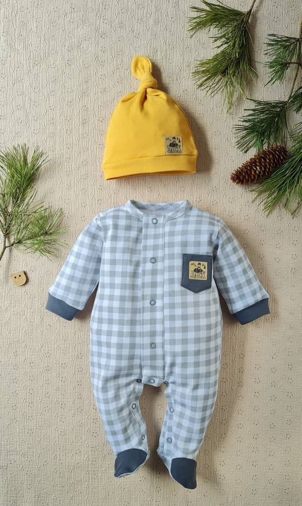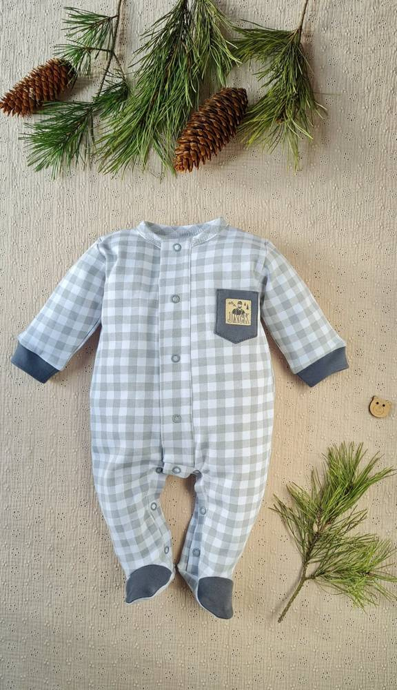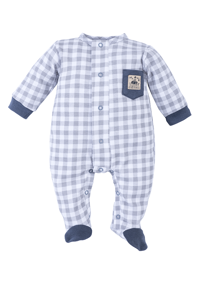 Bawełniany pajac z stópkami. Możliwość całkowitego rozpięcia umożliwia łatwe i szybkie ubieranie dziecka. Dodatkowy klin w kroku zapewnia swobodę użytkowania i nie krępują ruchów dziecka. Model zapinany na napki.