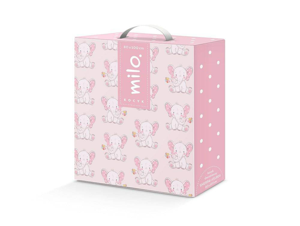 Milo sherpa słonik kocyk włochacz dwustronny różowy
