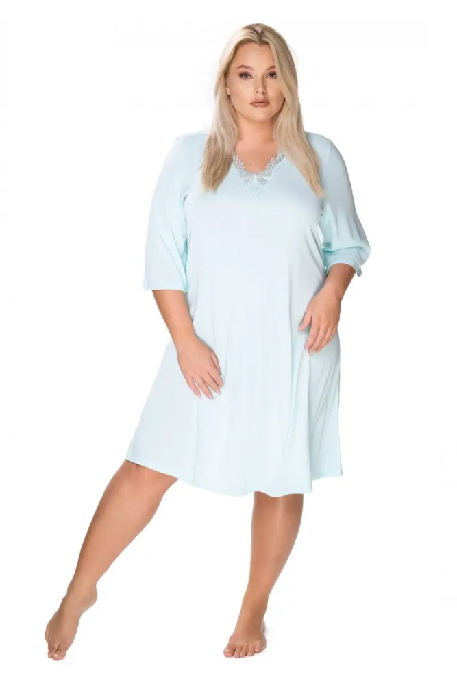 Model Elena posiada długość "za kolano" oraz wygodny rękaw 3/4. Dekolt został ozdobiony uroczą koronką. Luźny, zwiewny fason pozwala na dużą swobodę ruchów. Z pewnością spodoba się także Paniom plus size.