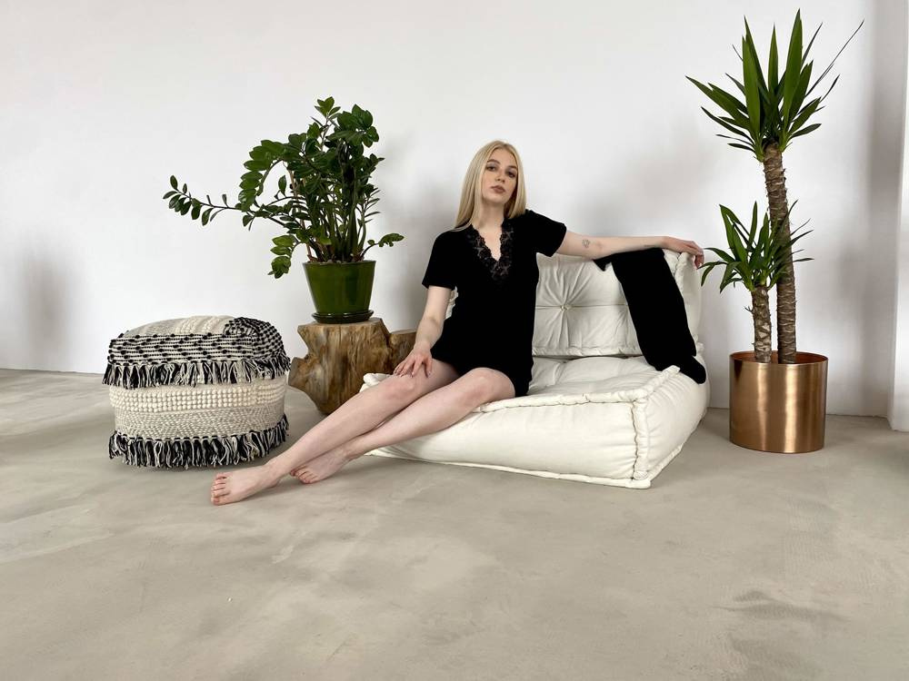 Koszula damska, z wysokiej jakości wiskozy, z krótkim rękawem. Dekolt w kształcie litery V, mankiety zakończone szeroką koronką o kwiatowym motywie. Długość do kolan. Każda kobieta poczuje się w niej wyjątkowo !!