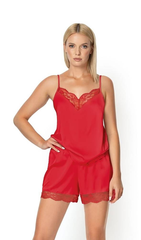 Efektowna piżama damska wykonana z wysokiej jakości satyny. Koszulka na wąskich regulowanych ramiączkach