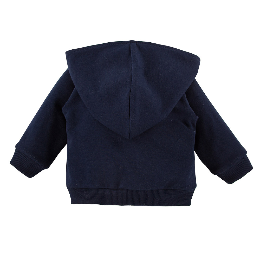 Bluza z kapturem jest rozpinana na zamek. Spodnie posiadają w pasie gumę.