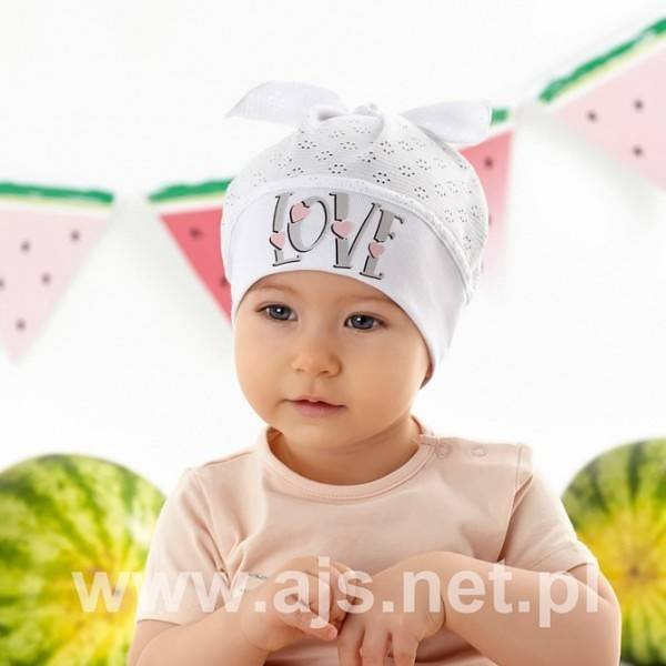 Bawełniana czapka dla dziewczynki wykonana z wysokiej jakości cieniutkiej ażurowej dzianiny.