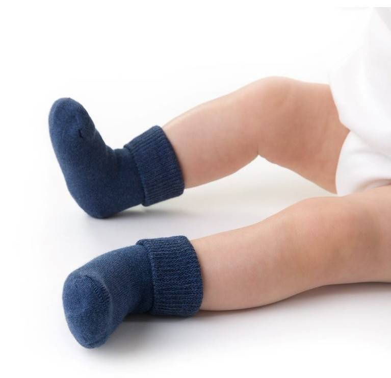 Gładkie bawełniane dziecięce skarpety frotte z wywinięty ściągaczem.