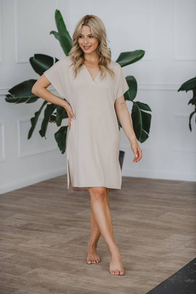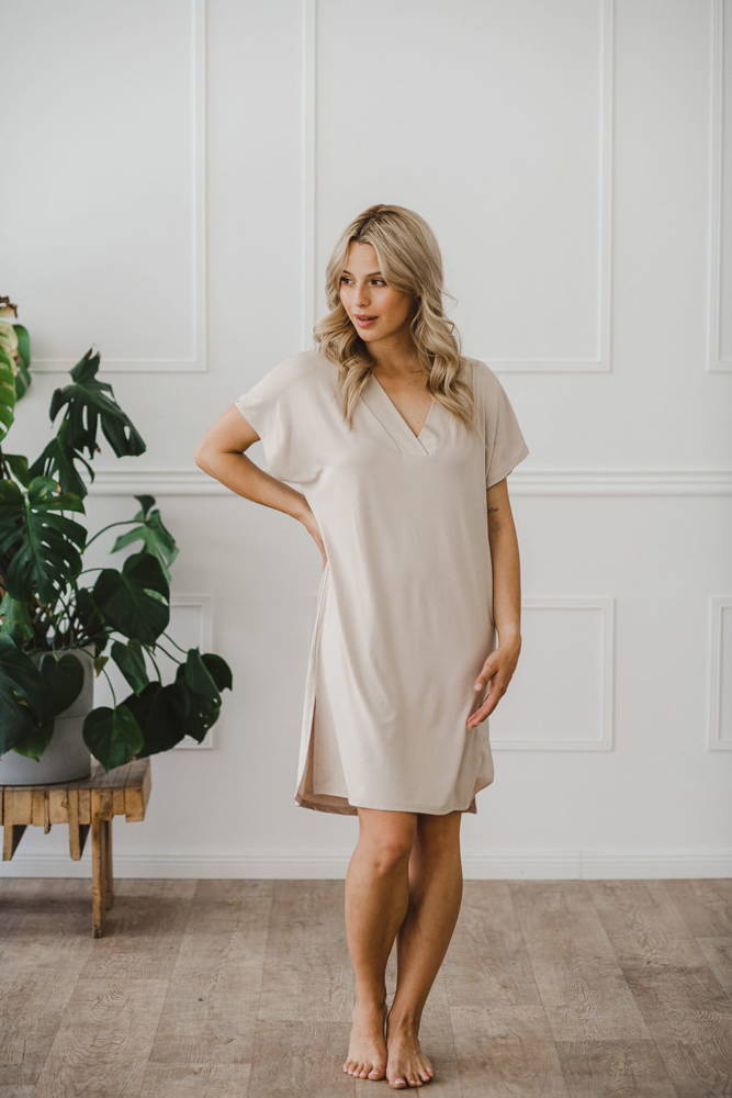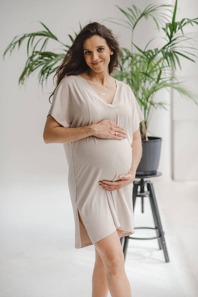 Moon bambusowa koszula nocna ciążowa i do karmienia Milk&Love jasny beż