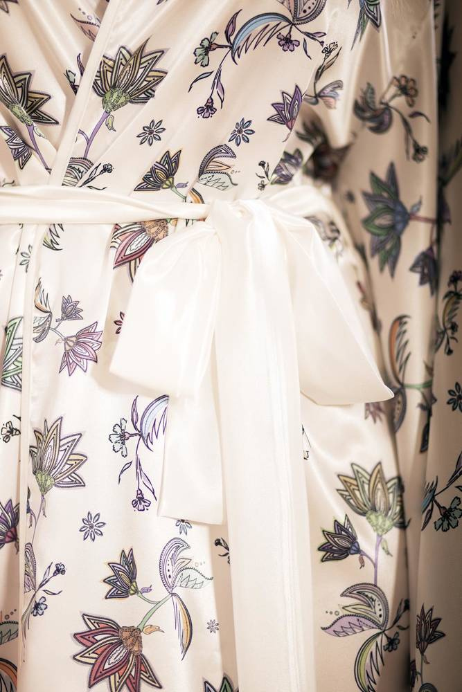 Nastrój ten niewątpliwie podkreśli satynowa podomka Hulhule, w której tkanina również została zaprojektowana przez przyjaciół Kalimo. Peniuar został tak skonstruowany aby sprawiał wrażenie lekkości i dostojności a Ty mogła się poczuć jak kolorowy motyl. Dasz się zaczarować? Uwagę przykuwają szerokie rękawy sięgające do połowy łydki.