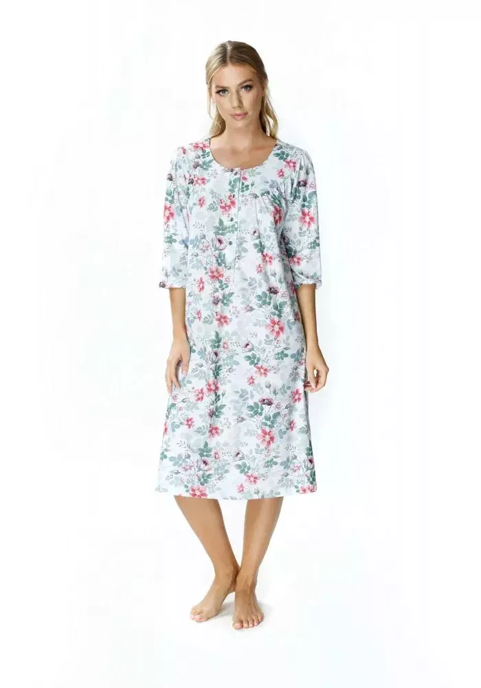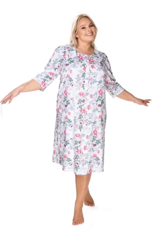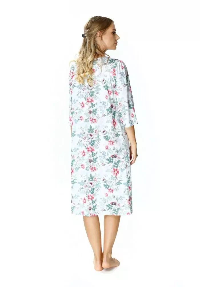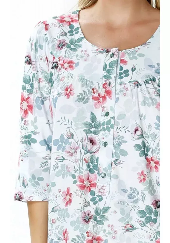 86410 Adelajda koszula nocna z rozpinanym dekoltem Mewa kwiaty