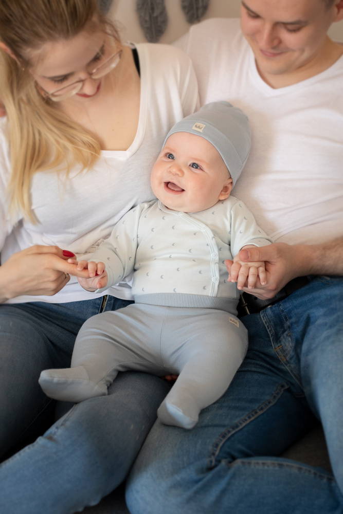 Bawełniana czapka dobrze przylega do główki, dzięki czemu zapewnia maluchowi ochronę uszu przed chłodem.
