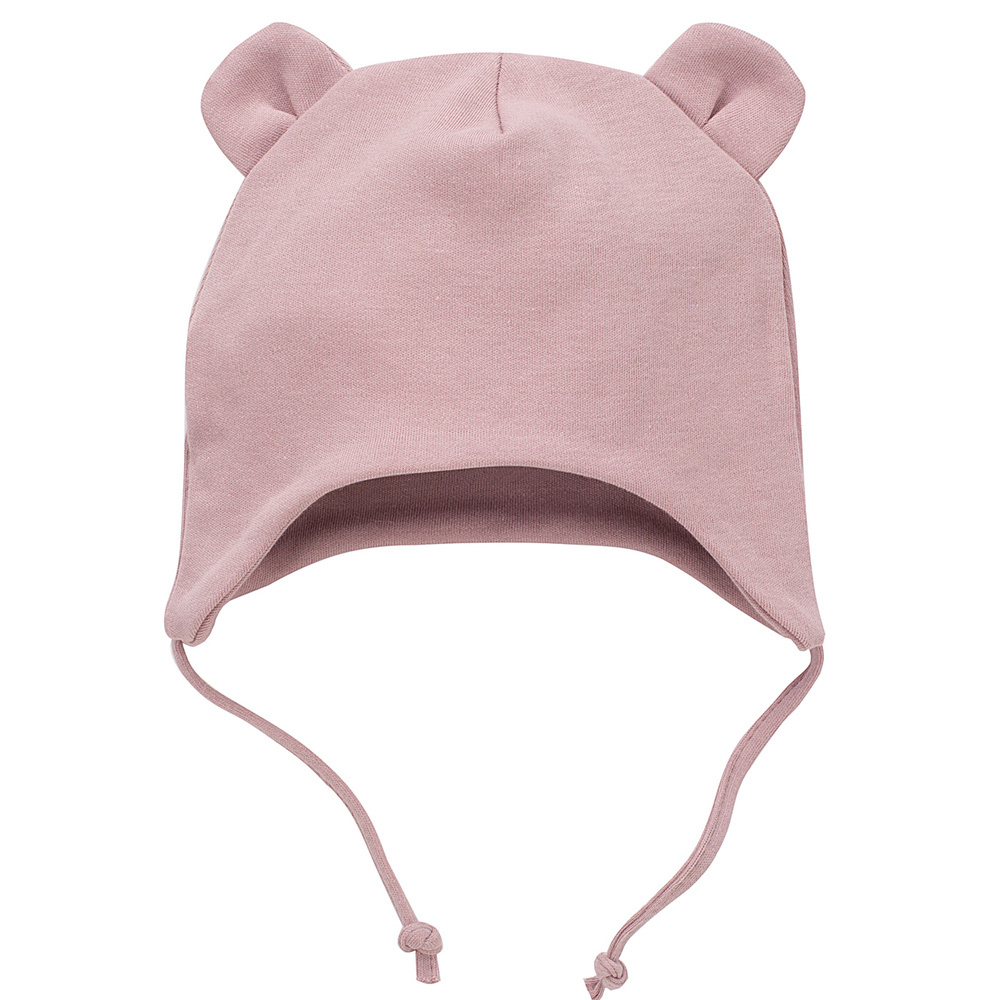 Bawełniana czapka wiązana dobrze przylega do główki, dzięki czemu zapewnia maluchowi ochronę uszu przed chłodem.
