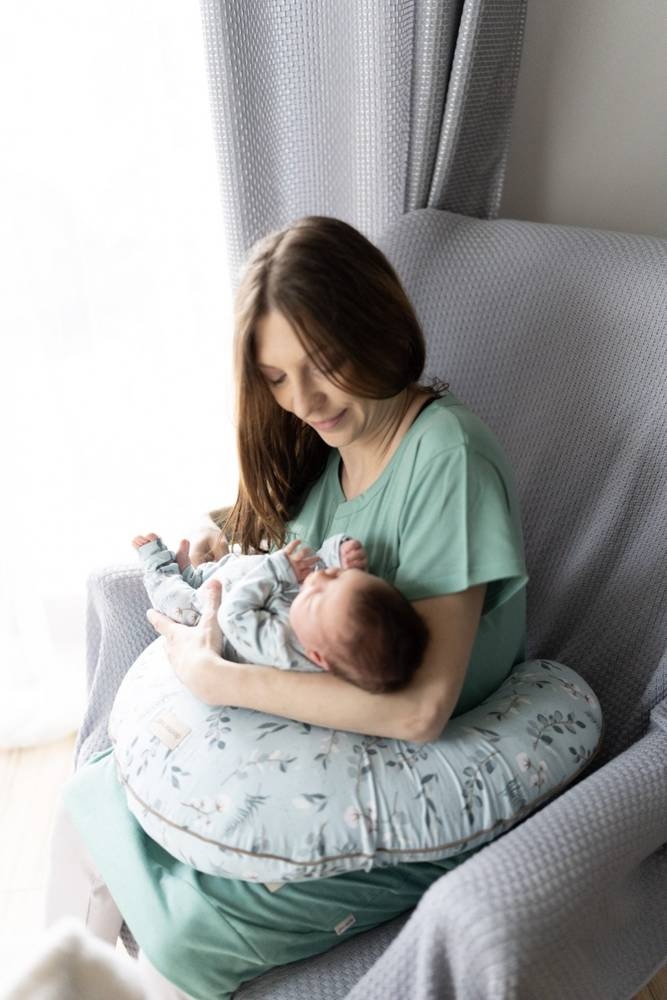 Poduszka do karmienia jest zaprojektowana tak, aby w maksymalnym stopniu ułatwić karmienie niemowlęcia piersią oraz zapewnić komfort karmiącej mamie. Ergonomiczny kształt poduszki podtrzymuje dziecko podczas karmienia i pozwala matce odciążyć ramiona, barki oraz szyję w odcinku karkowym. Poduszkę można wykorzystać także na inne sposoby takie jak: zabawa z niemowlęciem, czy nauka siedzenia. Poszycie wykonane z 100% bawełny, miękka i delikatna w dotyku.