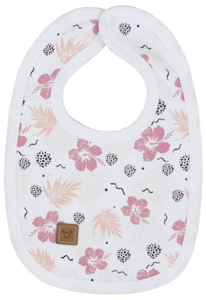 Wykonany z miękkiej bawełny, nie podrażnia delikatnej skóry dziecka. Wygodne zapięcie na nap.