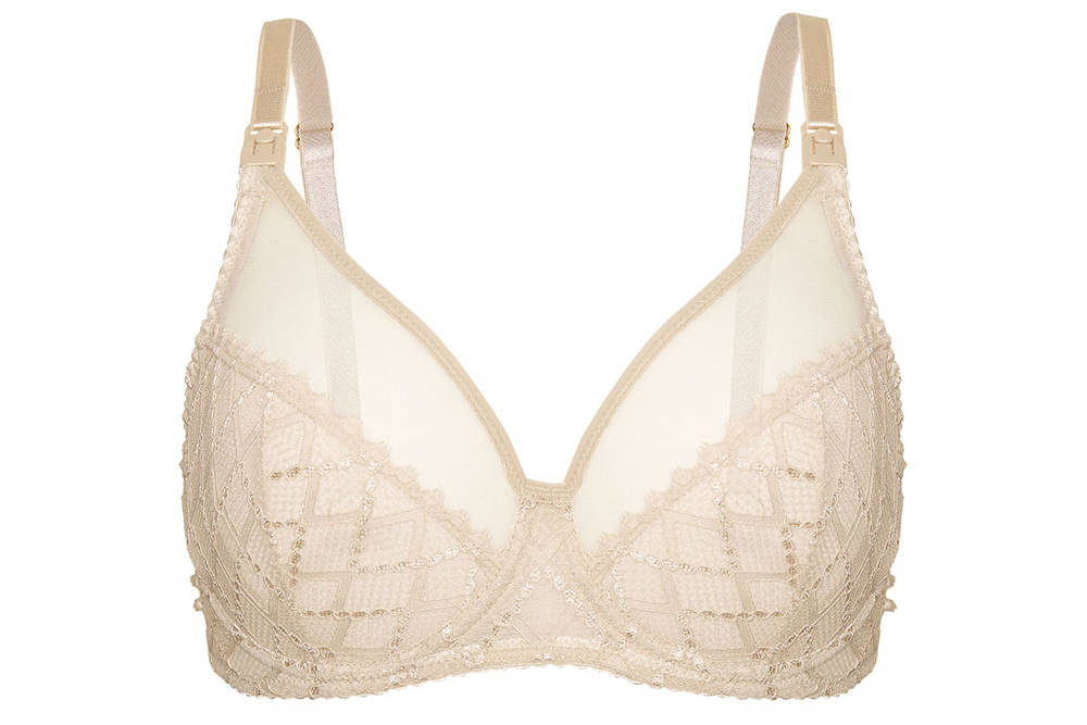 Biustonosz wykonany z miękkiej i elastycznej koronki w unikatowy wzór. Fiszbiny są bezpieczne dla piersi i nie uciskają gruczołów mlecznych .Podtrzymuje nawet duży biust. Posiada klipsy Easy-Off marki Fildan, które ułatwiają karmienie jedną ręką. Ramiączka są regulowane.