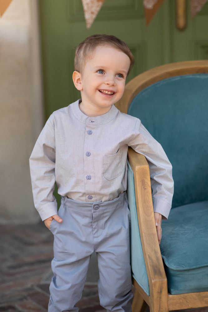 Rozpinana koszula chłopięca uszyta z przyjemnego dla ciała materiału.