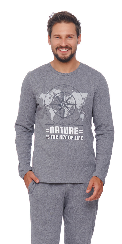 Miękka i przyjemna w dotyku piżama zapewni komfort podczas snu . Model o klasycznym kroju. Koszulka z długim rękawem, dekolt półokrągły. Spodnie długie, z kieszeniami, wykończone komfortową gumką w pasie.
