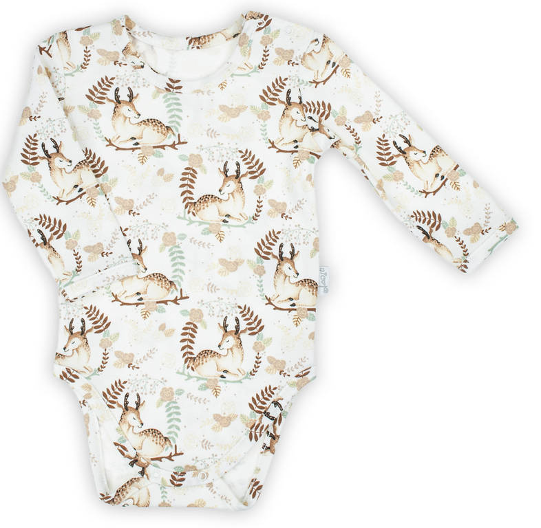 Body z długim rękawem dla dziewczynki, uszyte z bawełny. Posiada ona certyfikat Oeko-Tex Standard 100 Tekstylia godne zaufania. Zapinane na wygodne bezniklowe napy na ramieniu i w kroku.