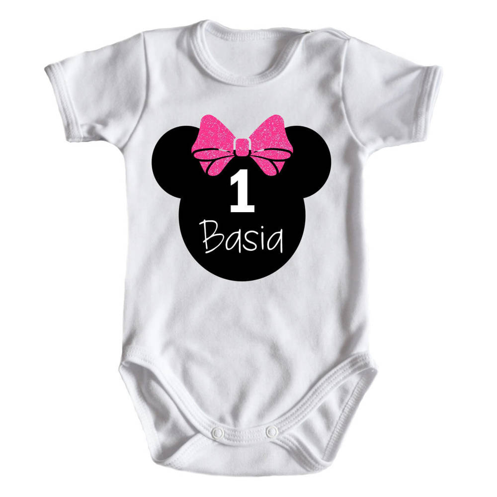 Body krótki rękaw " 1 urodziny roczek" Moocha róż