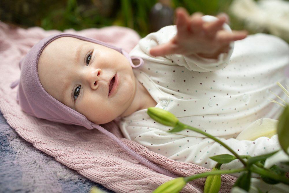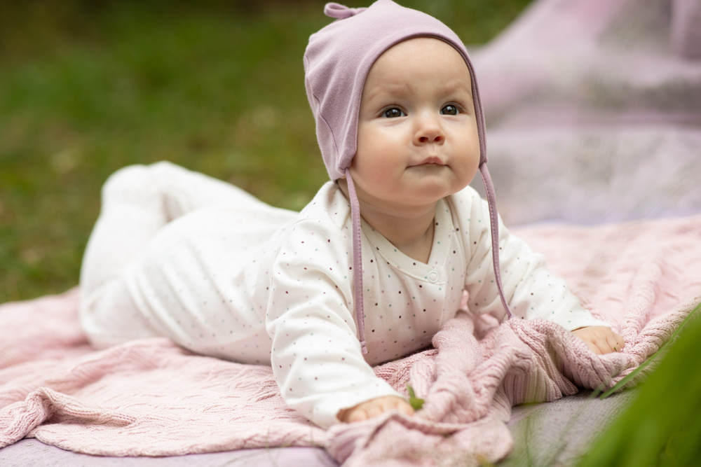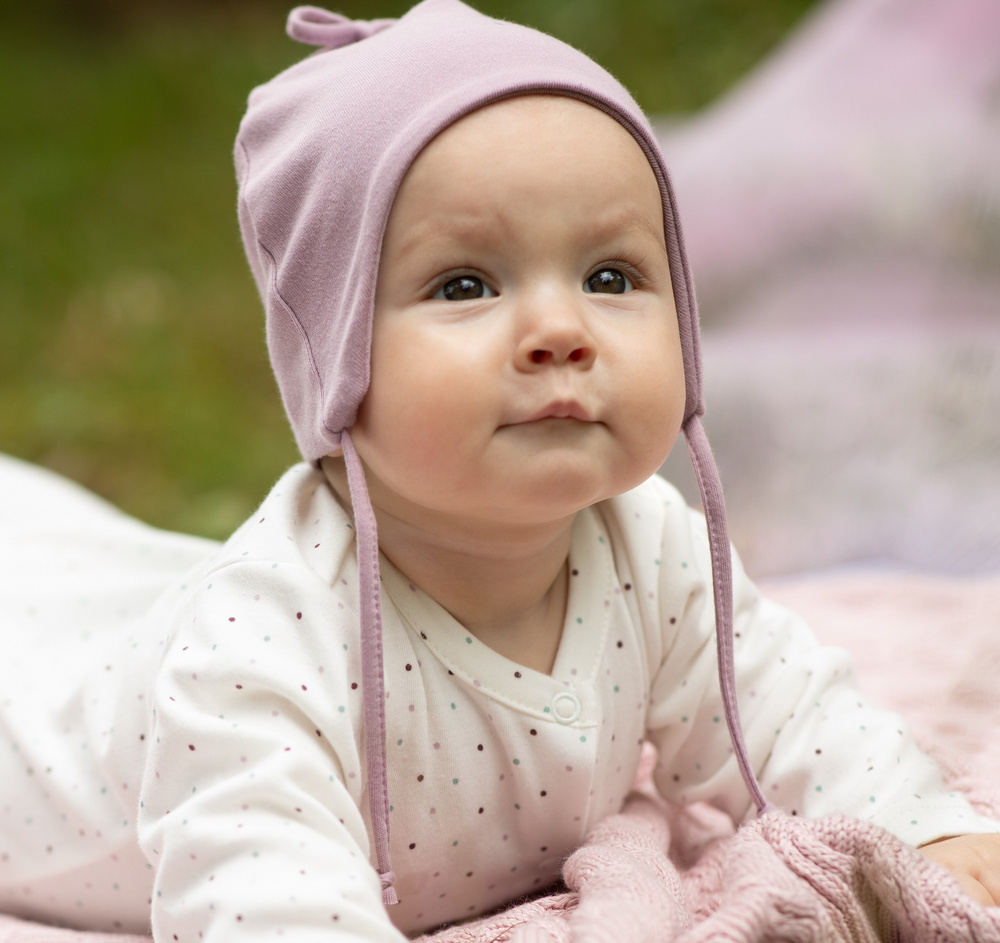 Bawełniana czapka dobrze przylega do główki, dzięki czemu zapewnia maluchowi ochronę uszu przed chłodem.