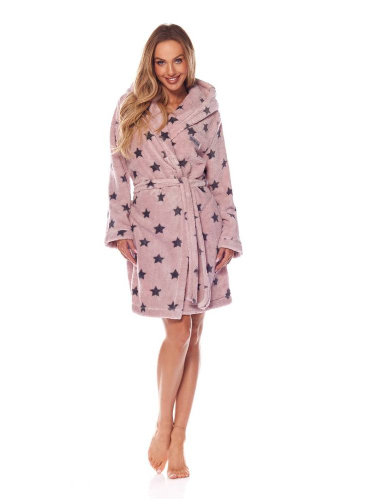 Szlafrok damski wykonany w przyjemnego materiału w gwiazdki.