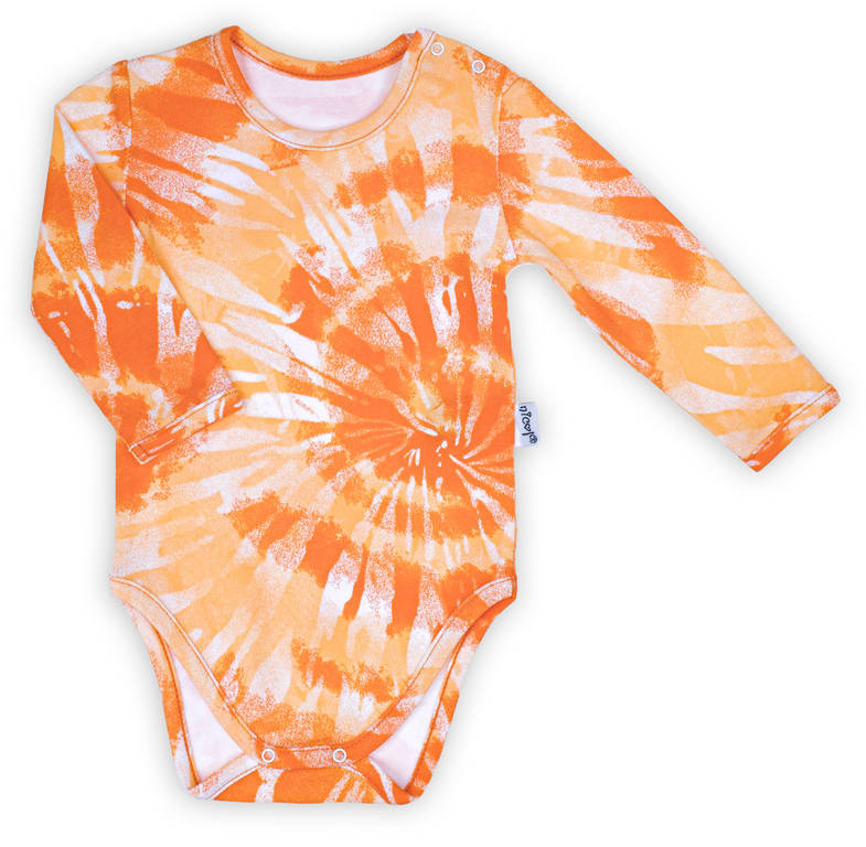 Body z długim rękawem dla chłopca, uszyte z bawełny w jaskrawych kolorach, posiadającej certyfikat Oeko-Tex Standard 100 Tekstylia godne zaufania. Ubranko zapinane jest na ramieniu zapewniając komfort przy ubieraniu.
