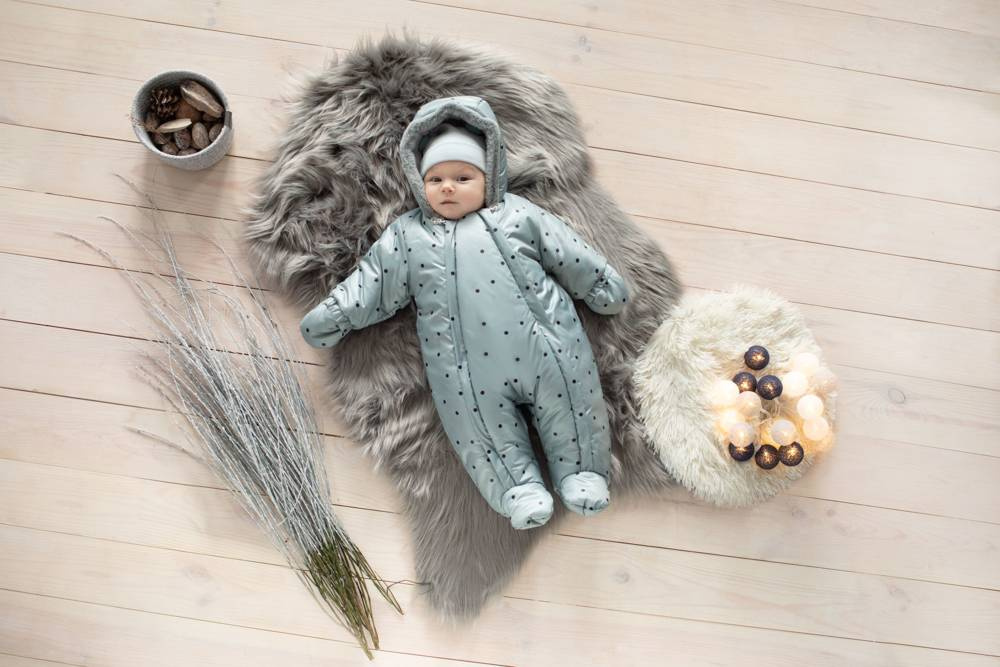 Ocieplany kaptur wykończony jest jasnym, miłym w dotyku futerkiem. Na końcu rękawów znajdują się, połączone z nimi, wywijane rękawiczki. Kombinezon wyposażony jest w 2 suwaki przechodzące od szyi do stópek, a rękawy podszyte są śliskim materiałem. To znacznie ułatwia ubieranie nawet noworodka.