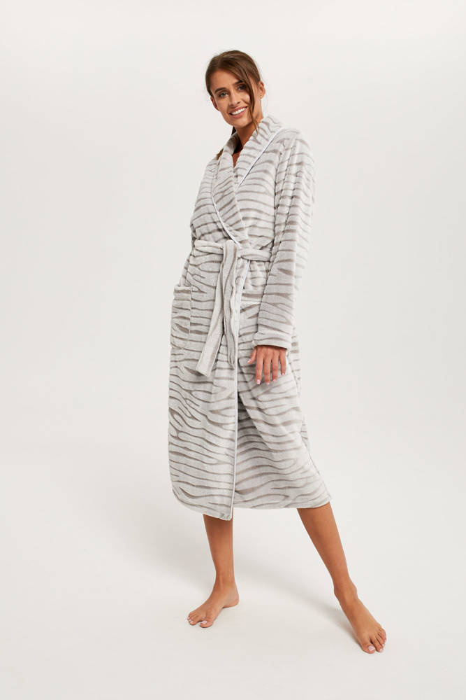 kraj produkcji: POLSKAMiękki i przyjemny w dotyku szlafrok Asma idealnie sprawdzi się na jesienno-zimowy czas. Delikatny i puchaty materiał to bipolar, który cechuje się świetną termoizolacją, gwarantując ciepło i wygodę. Mocny, zwierzęcy print fantastycznie łączy się z subtelną, szarą kolorystyką, nadając całości nietuzinkowego charakteru. . Dodatkowym atutem jest praktyczne wiązanie w pasie oraz funkcjonalne kieszenie.