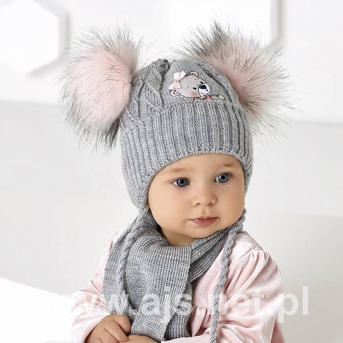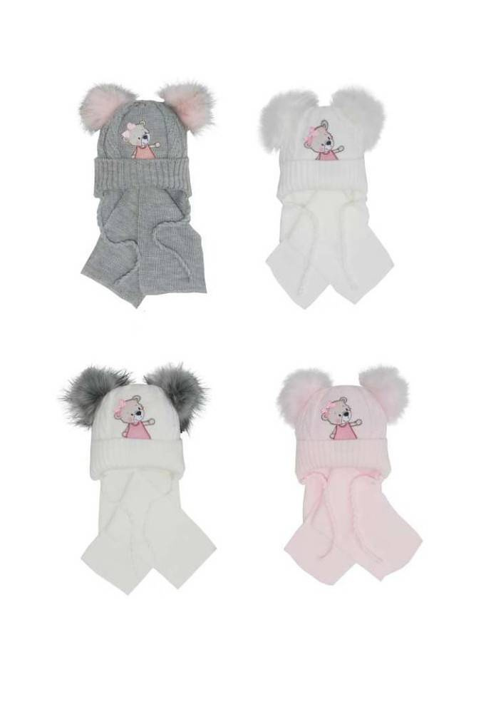 44-404 Zestaw dziewczęcy Czapka+szalik AJS mix-kolor