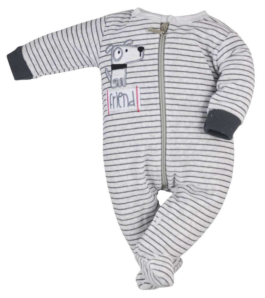 Bawełniany pajacyk niemowlęcy rozpinany na całej długości na zamek- co ułatwia przewijanie dziecka.
