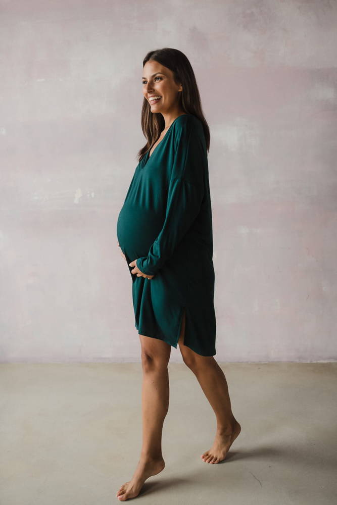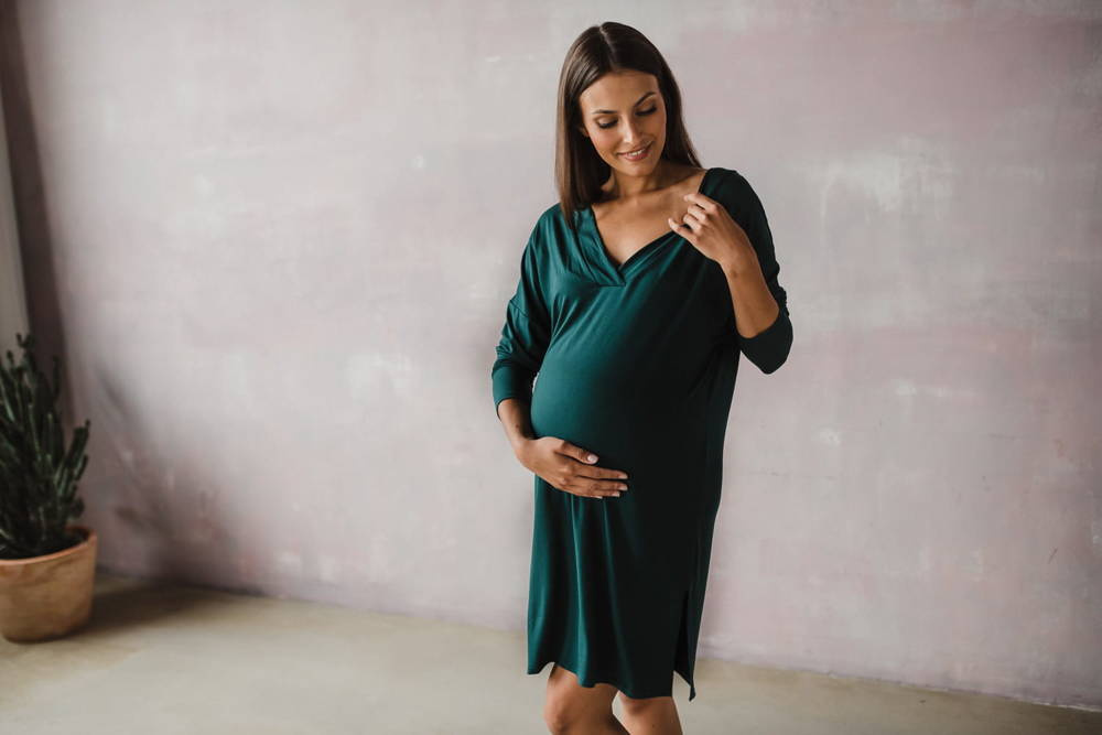 Moon bambusowa koszula nocna ciążowa i do karmienia długi rękaw Milk&Love butelkowa zieleń