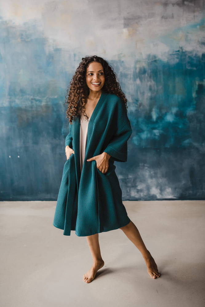 Szlafrok bawełniany wafel Milk&Love ciemna morska zieleń