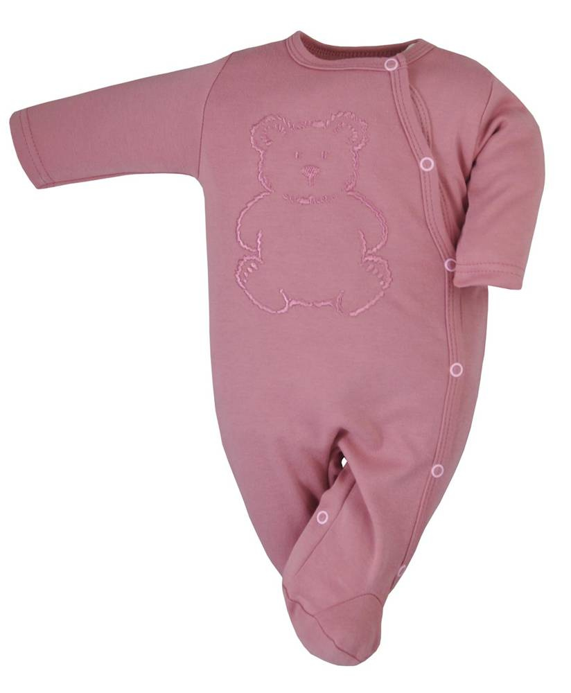 Bawełniany pajacyk niemowlęcy rozpinany na całej długości na napki- co ułatwia przewijanie dziecka.