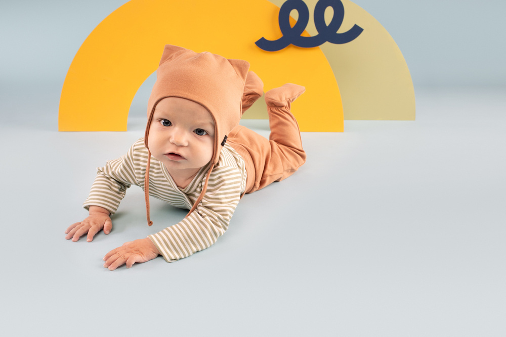 Bawełniana czapka dobrze przylega do główki, dzięki czemu zapewnia maluchowi ochronę uszu przed chłodem.