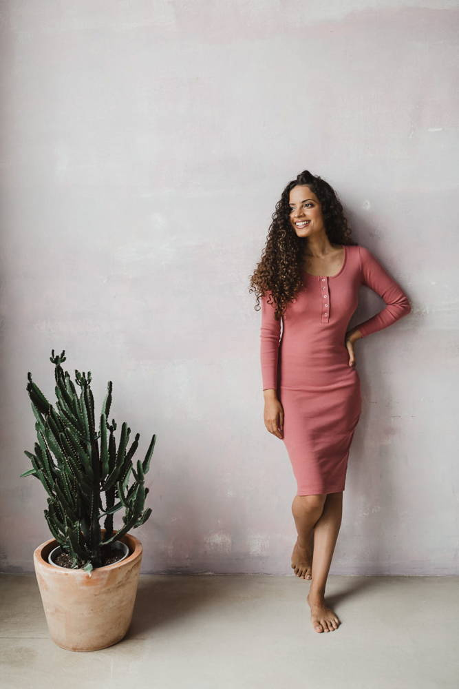 Tummy Sukienka ciążowa i do karmienia z dzianiny w prążek Milk&Love dusty cedar